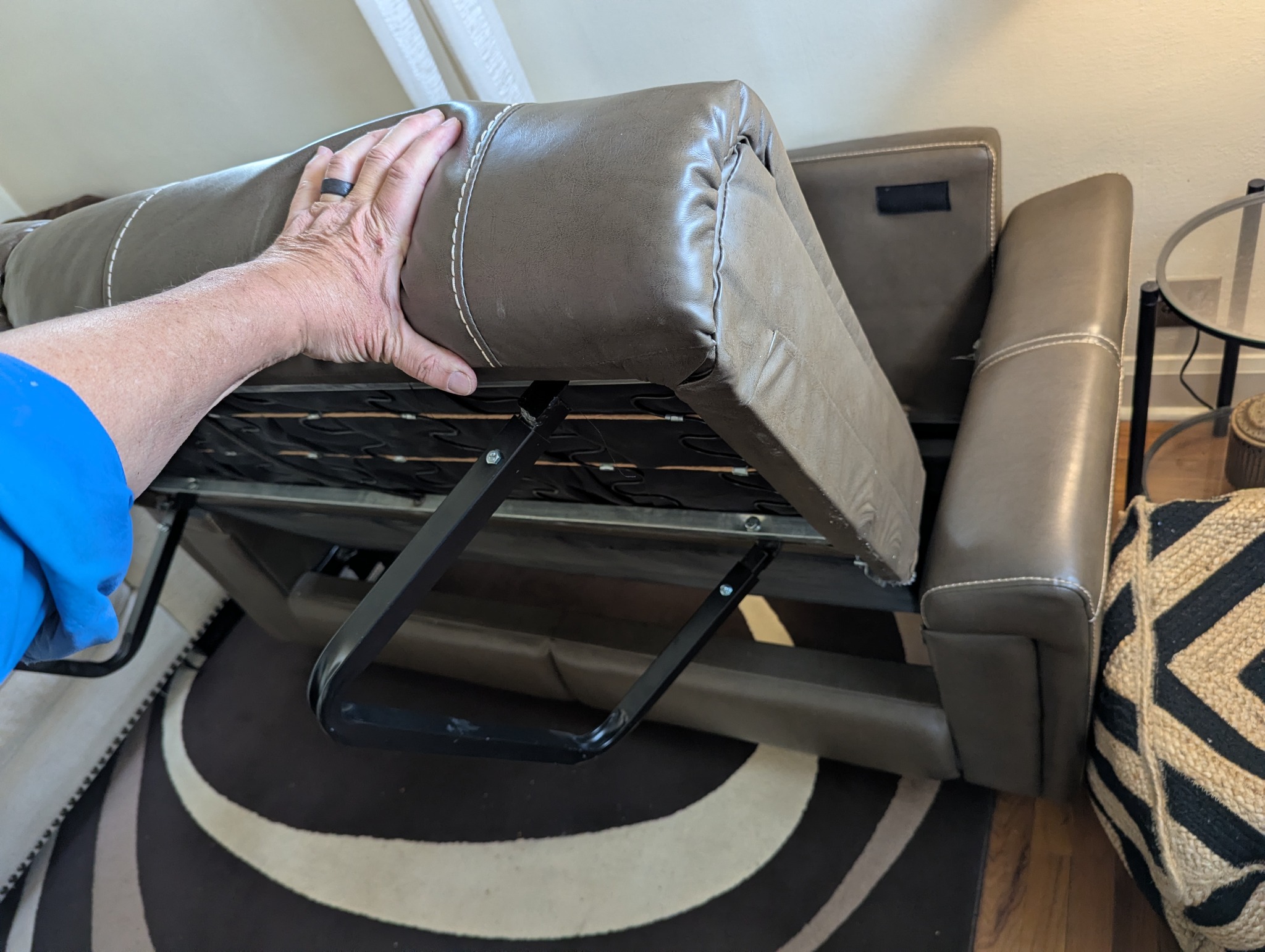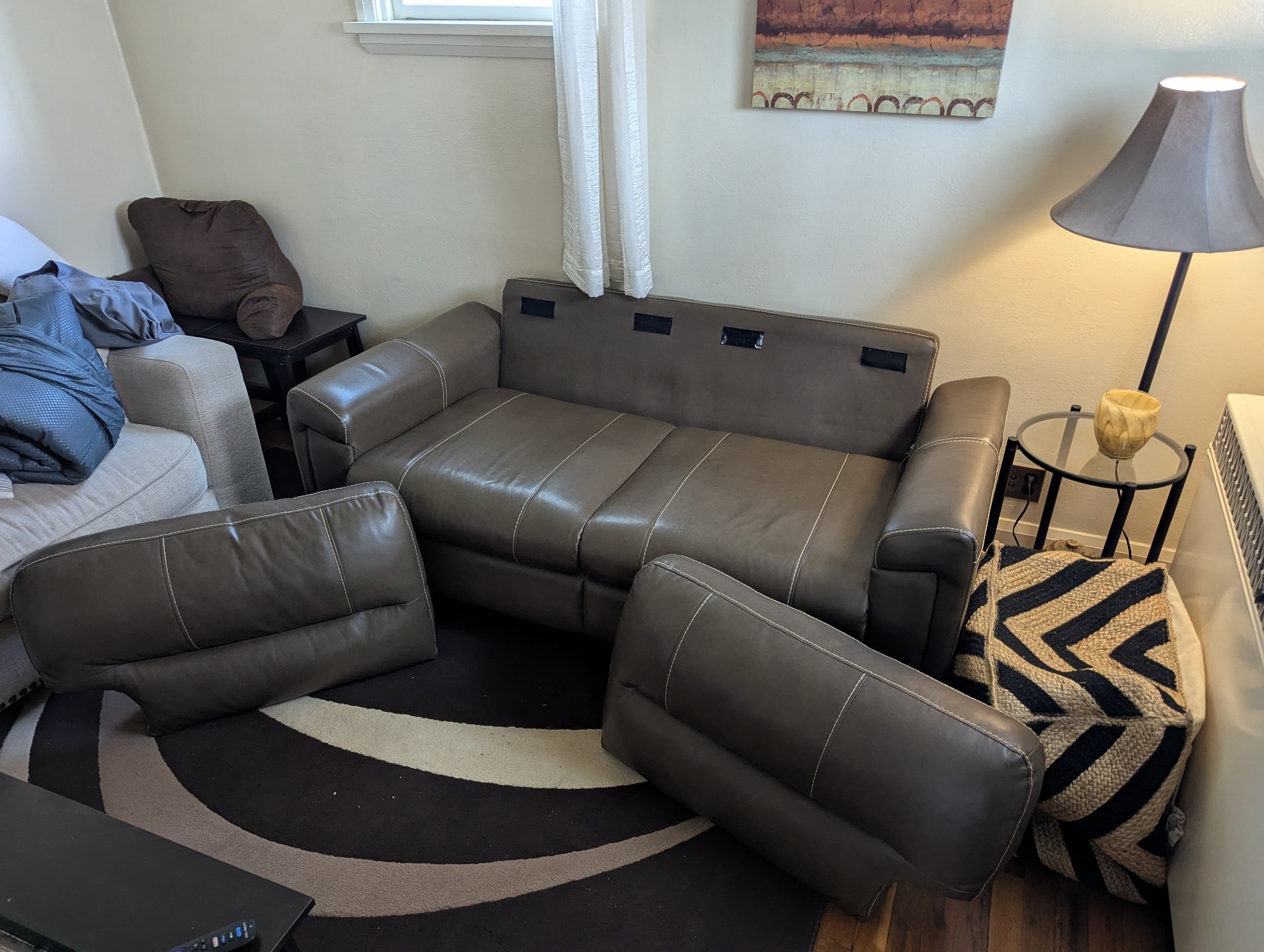Here's the couch. First move the back cushions.